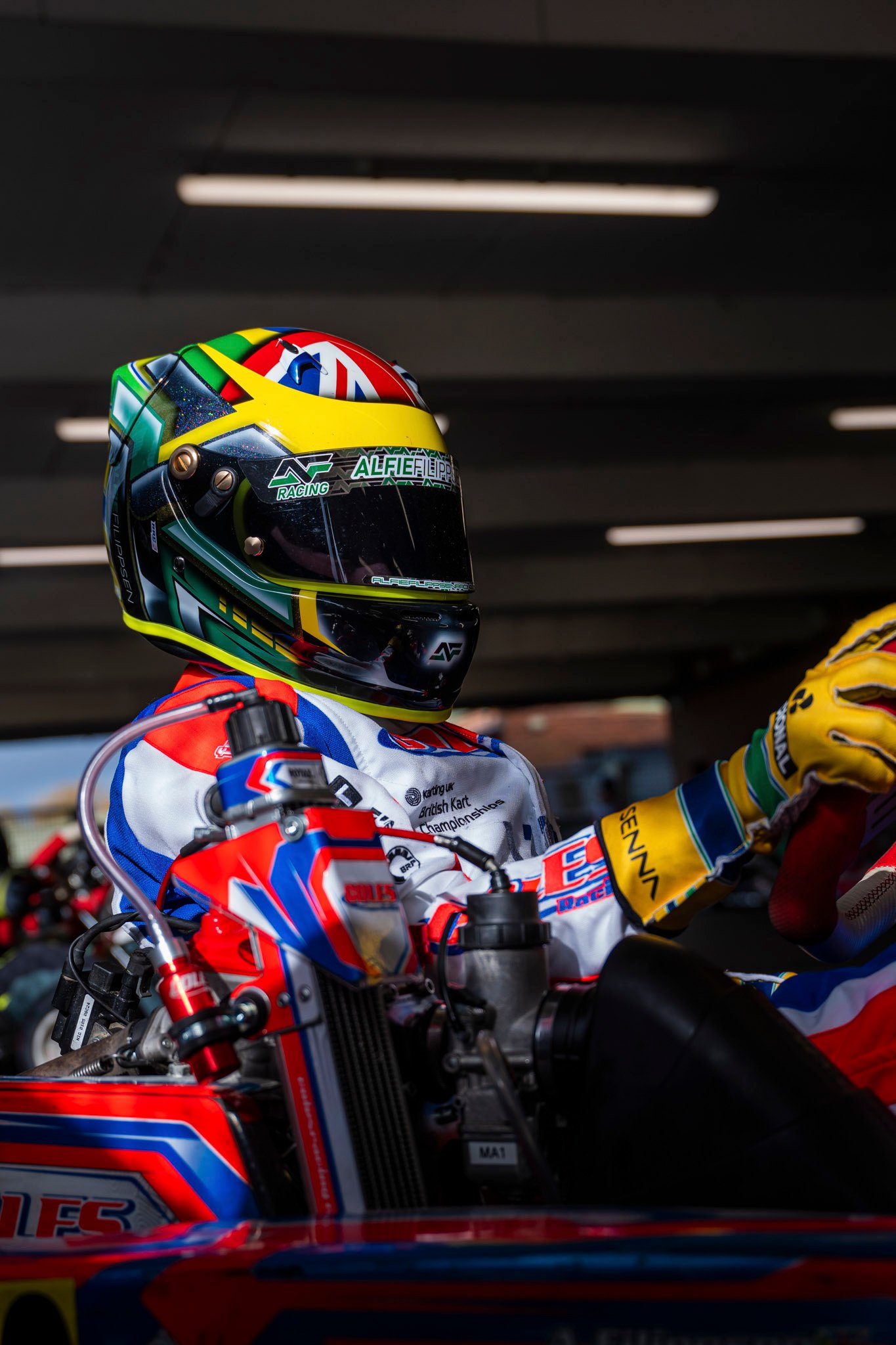This inspiration is reflected in his helmet design, which pays tribute to Senna’s iconic colours and style while still representing Alfie’s own individuality. Carefully developed with his input, the helmet combines tradition with personal branding, featuring his own logo and design elements that make it unique to him as a driver. It symbolises not only respect for a racing legend, but also Alfie’s own ambition to build his path in motorsport with the same determination and passion.